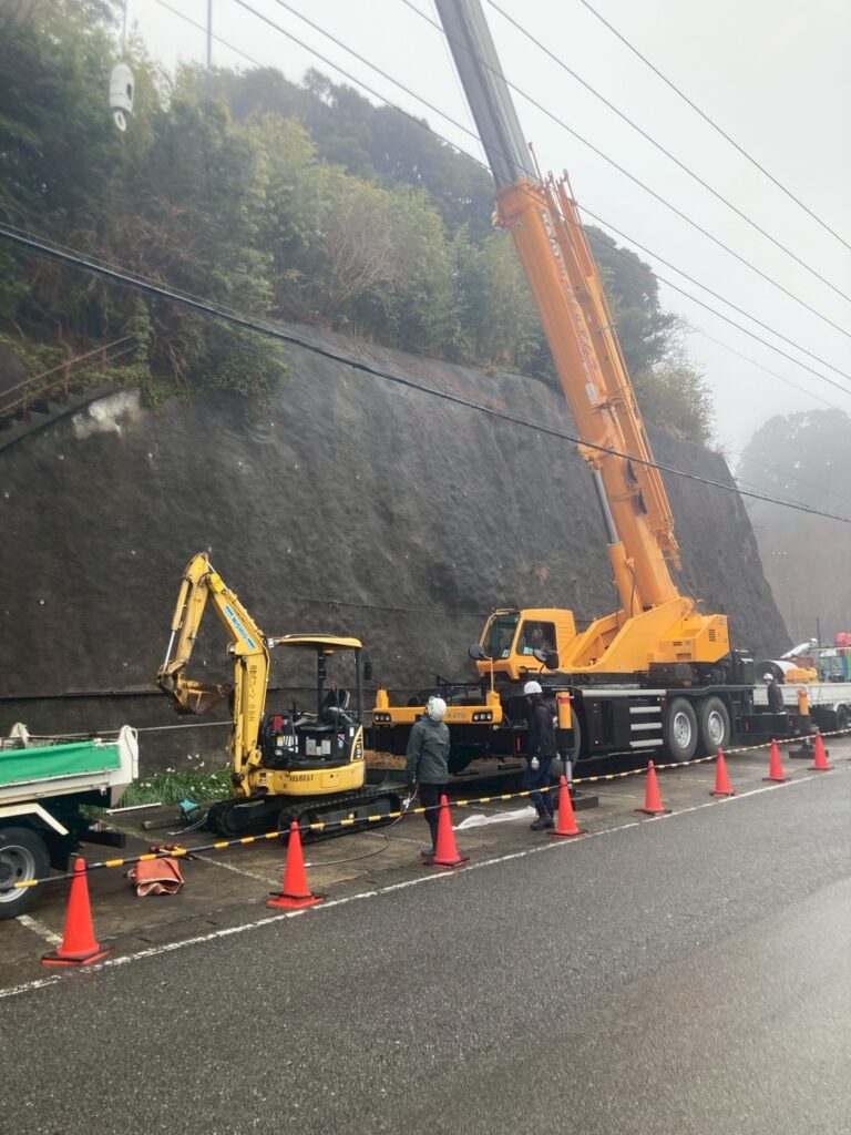 建柱工事は新規の電柱新設と防災無線柱の新設工事でした。